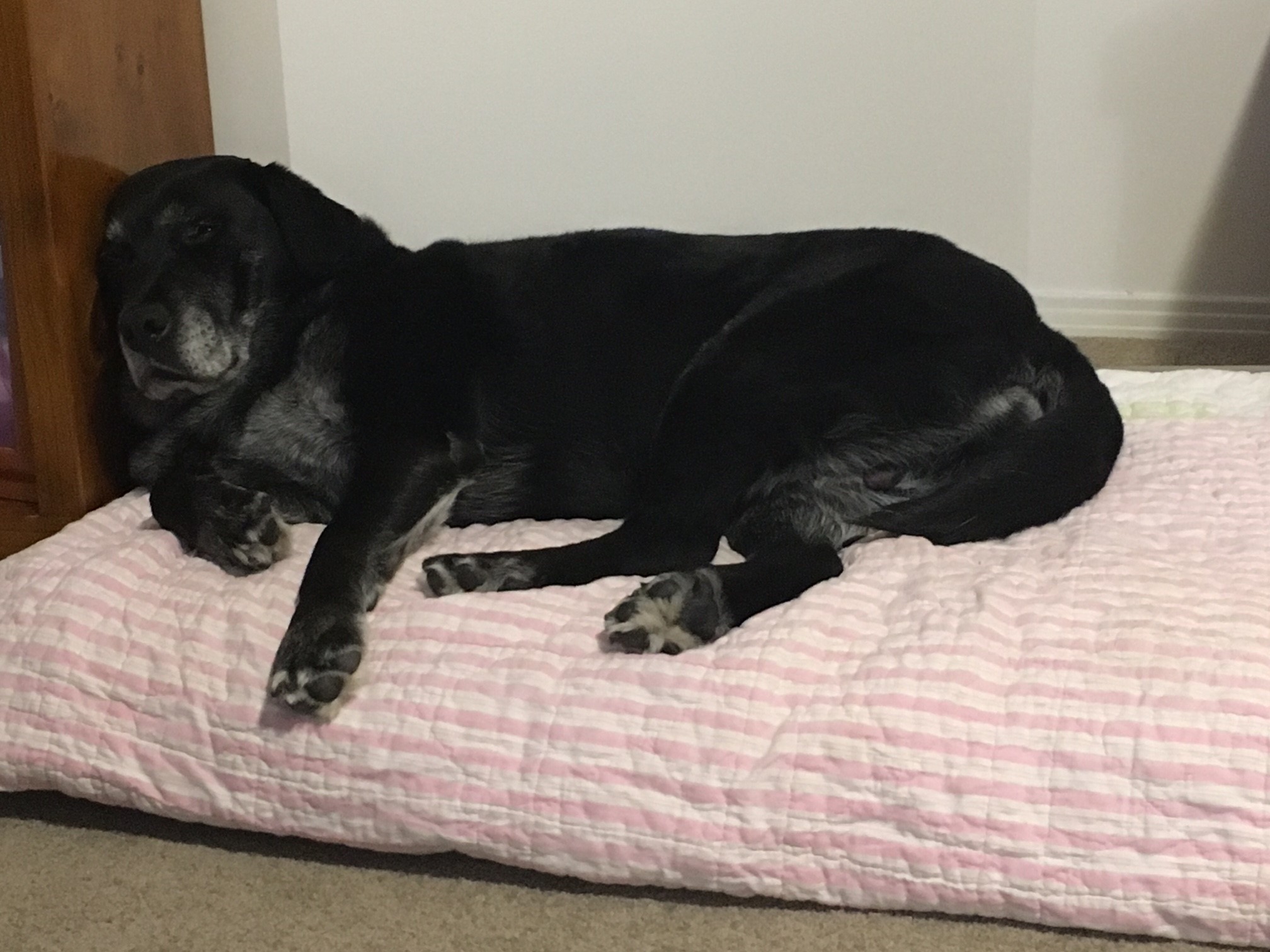 But I am finding it tougher these days. I’m 10.5 years old now, that’s 75 in human years. The arthritis is painful when I’m in cold places, and my wheat allergy means that my ears are sore much of the time. I think I should take it a little bit easier.