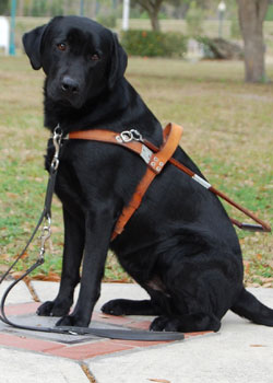 I’m a golden lab — almost white really — and I’m super cute. Out of harness I’m pretty upbeat, but when the old dude picks up the harness and lead I’m pretty chilled. Not that I don’t want to work as a guide dog. I just don’t want him to think he’s totally in control. He’s a control freak you know.